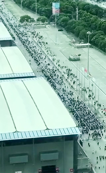 하지만 매년 많은 관람객이 찾는 게임쇼인 만큼, 행사장 밖에는 수 백명의 관람객들이 긴 줄을 이룬 모습을 확인할 수 있다. 주말에는 이보다 더 많은 인파가 몰릴 것으로 예상된다.