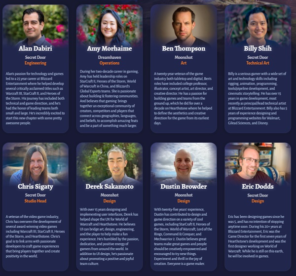 외신에 따르면 마이크 모하임 대표는 블리자드 출신 베테랑 개발자들과 함께 캘리포니아주 어바인에 드림헤이븐(Dreamhaven)이라는 게임 퍼블리셔 및 개발사를 설립했다. 23일(현지시각) 처음 공개된 이 회사는 산하에 문샷(Moonshot), 시크릿도어(Secret Door) 등 2개의 개발 스튜디오를 운영한다. 문샷은 대규모 프로젝트를, 시크릿도어는 캐주얼한 멀티플레이 프로젝트에 초점을 맞춘 것으로 알려졌다.