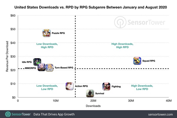 센서타워는 “어떤 RPG는 적은 수의 플레이어에서 상당한 수익을 거둘 수 있는 반면, 어떤 RPG는 다운로드 수가 높아도 더 낮은 수익을 거둔다”며 “올해 다운로드 수가 크게 늘지 않았음에도 매출이 크게 증가한 이유는 코로나19 때문으로 보인다. 이러한 매출 추이가 장기적으로 계속될지는 코로나19로 인한 격리가 소비 지출에 미치는 영향에 달렸다”고 전했다.