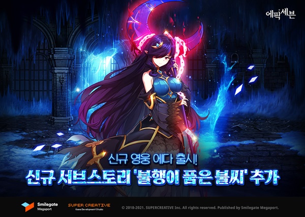 스마일게이트 메가포트(대표 장인아)가 서비스하고 슈퍼크리에이티브(김형석, 강기현 공동대표)가 개발한 글로벌 히트 모바일 RPG ‘에픽세븐’이 신규 영웅 ‘에다’를 업데이트 하고 에다의 이야기를 다룬 서브 스토리 ‘불행이 품은 불씨’를 오픈했다고 12일 밝혔다.
