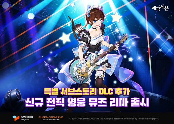 마지막으로, 3성 영웅 ‘리마’의 전직 영웅 ‘뮤즈 리마’도 추가됐다. 뮤즈 리마는 오리지널 영웅인 ‘리마’를 특정 단계까지 성장시킨 후 전직 퀘스트를 클리어하면 획득할 수 있다. 아군의 스킬 쿨타임 감소를 기반으로 적에게 약화 효과를 부여하고 아군에게는 강화 효과를 부여해 다방면에서 활용이 가능한 영웅이다. 에픽세븐 세계관 속에서는 또 다른 영웅 ‘메이드 클로에’와 함께 2인조 밴드 ‘메이드 킹덤’을 결성하고 다양한 장르의 음악에 도전하는 열정적인 영웅으로 등장한다.
