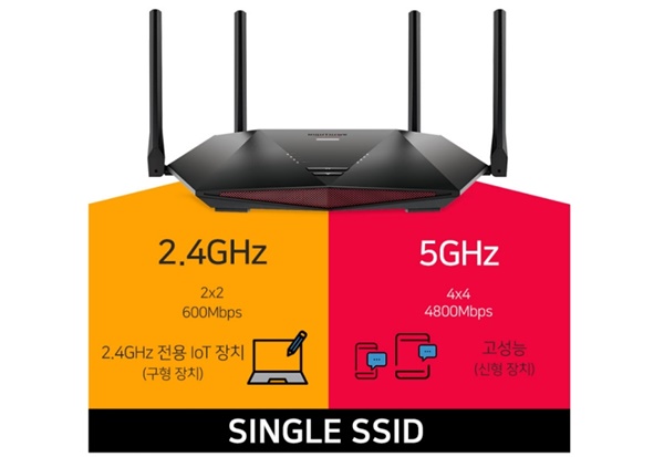 두 개의 밴드는 스마트 커넥터로 마치 하나의 와이파이 망처럼 쓸 수 있다. 공유기와의 거리, 신호의 강도에 따라 공유기가 어떤 밴드와 연결할지를 자동으로 결정해 주는 편의기능이다.