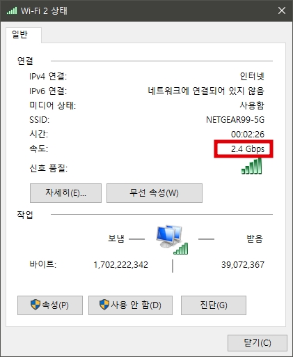 실제로 와이파이6 무선 랜카드를 장착한 2x2 노트북에서 링크 속도는 2400Mbps로 측정됐다. 여기에 160MHz 채널 대역폭이 적용돼 고속 통신 상황에서도 안정적인 성능과 속도를 보장한다.