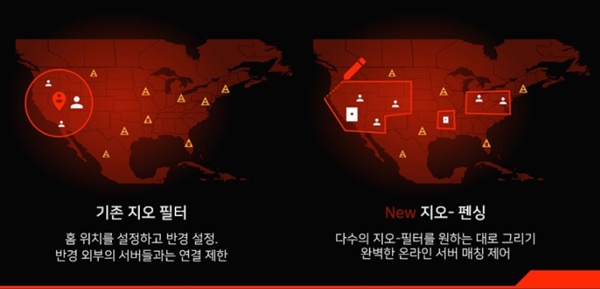 진화한 지오-필터 기능도 특징이다. 지오-필터는 멀티플레이 게임에서 무작위 매칭을 제어하는 나이트호크 시리즈와 듀마OS 만의 특화 기능이다.