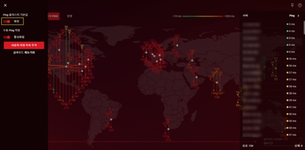 핑 히트맵을 쓰면 세계 각지의 게임 서버 정보를 한 눈에 살펴볼 수도 있다. 세계 지도에 각 서버의 물리적 위치와 연결 품질이 확인할 수 있는 기능이다. 즐겨찾는 서버의 핑 기록을 작성해 연결 품질을 볼 수도 있다. 국내에서도 즐기는 유저가 많아진 글로벌 서비스 게임을 즐길 때 활용하기 좋다.