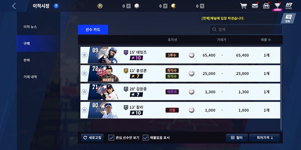 이적시장은 끝내 영입하지 못한 선수가 있거나, 육성 과정을 뛰어넘어 완성된 선수를 영입하고 싶을 때 활용하면 좋다. 이적시장에서는 선수의 모든 스펙이 함께 거래된다. 강화, 개성, 가지고 있는 칭호와 타이틀까지 한번에 거래되며, 평가된 가치를 기반으로 이용자가 원하는 가격에 거래가 이뤄진다.