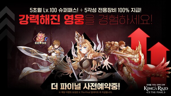 베스파(대표 이완수)가 자체 개발한 모바일 RPG '킹스레이드'가 시즌1 마지막 업데이트 ‘X : The Final(이하 더 파이널)’을 앞두고 사전예약을 진행한다.
