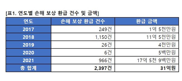 업비트 서비스가 출범한 2017년부터 현재까지, 일시적으로 발생한 서비스 장애에 따른 손해 2397건에 대해 31억 원이 지급됐다. 2021년에만 요청이 총 1207건 접수됐고, 그 중 80%에 해당하는 966건에 대해 17억 원이 넘는 금액을 보상했다.