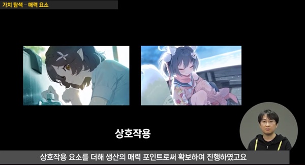 김 AD는 “개발자가 아닌 유저로서 생각하는 캐릭터 게임의 매력은 게임의 성능이나 품질 이전에 유저가 쏟은 애정에 대해 존중이 느껴지는 것”이라며 “블루 아카이브의 아트가 향후 제공하고자 하는 가치는 우리만이 줄 수 있는 시각적 경험과 내러티브(서사)다. 이를 하나로 압축한 PV를 제작해 앞으로 아트 작업 진행의 이정표로 삼았다”고 말했다.