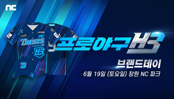 ‘프로야구 H3 브랜드데이’는 6월 19일(토) 오후 5시 창원NC파크에서 진행되는 NC 다이노스의 경기에서 열린다. NC 다이노스 선수들은 이날 브랜드데이를 기념해 ‘프로야구 H3 스페셜 유니폼’을 입고 경기를 치른다.