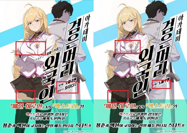 사건은 지난 21일, 웹소설 ‘아카데미 검은머리 외국인’의 표지를 문피아 측이 수정을 하면서 벌어졌다. ‘아카데미 검은머리 외국인’은 일본 라이트노벨의 클리셰를 비트는 콘셉트의 작품이다. 이에 따라 표지 역시 일본 라이트노벨 분위기를 내기 위해 제작된 것으로 보인다.