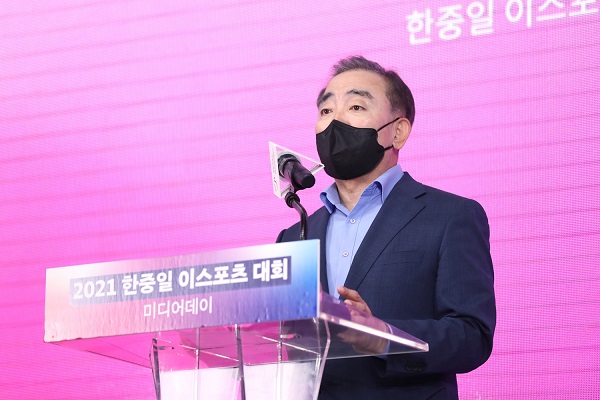 이날 열린 ‘2021 한중일 이스포츠 대회’ 미디어데이에는 유진룡 조직위원장을 비롯해 조직위원 및 국가대표 전력강화위원회 이지훈 총감독 등이 참석해 최초의 한중일 이스포츠 대회의 의미, 추진 경과, 일정, 장소 등을 공개했다.