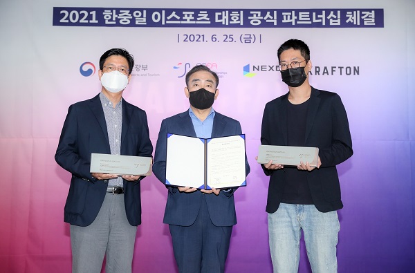 한편, 이날 조직위는 미디어데이에 앞서 넥슨, 크래프톤과 ‘2021 한중일 이스포츠대회’ 공식 파트너십 체결식을 진행했다. 두 종목사의 대회 후원에 대해 감사패를 증정하였으며, 대회의 성공적인 개최를 위해 두 종목사는 적극 협조하기로 하였다.