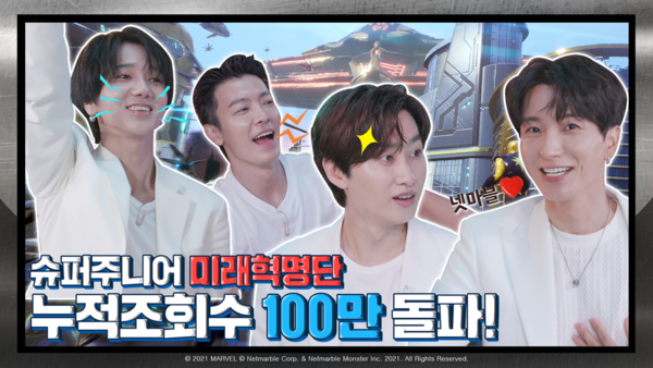 넷마블(대표 권영식, 이승원)은 하반기 기대작 ‘마블 퓨처 레볼루션’을 소재로 제작한 웹예능 ‘슈퍼주니어 미래혁명단’이 누적 조회 수 100만을 돌파했다고 12일 밝혔다.