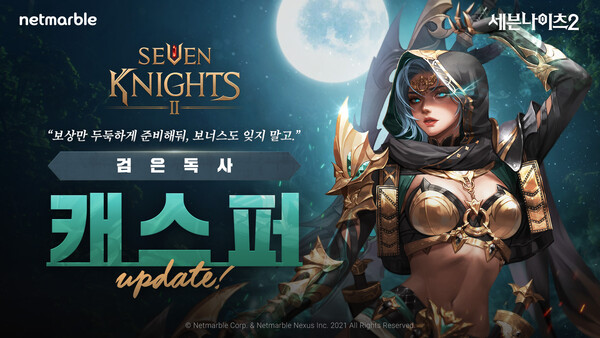 넷마블(대표 권영식, 이승원)은 모바일 MMORPG ‘세븐나이츠2(개발사 넷마블넥서스)’에 신규 전설 영웅 ‘검은 독사 캐스퍼’를 추가하는 업데이트를 했다고 13일 밝혔다.