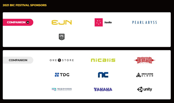 이번에 확정된 공식 스폰서 기업은 이제이엔, 엑솔라, 펄어비스, 에픽게임즈, 원스토어, 니칼리스, 디볼버디지털, TDG, 엔씨소프트, 메가존 클라우드, 게임물관리위원회, 야하하 스튜디오, 유니티코리아 등 총 13개사다.