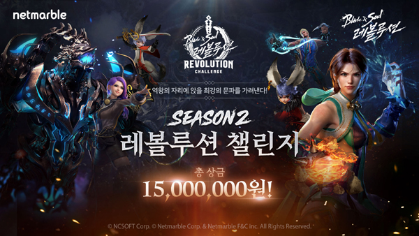 넷마블(대표 권영식, 이승원)은 모바일 MMORPG ‘블레이드 & 소울 레볼루션(개발사 넷마블에프앤씨)’의 온라인 게임대회 ‘레볼루션 챌린지 시즌2’를 예고하고 참가자를 모집한다고 밝혔다.