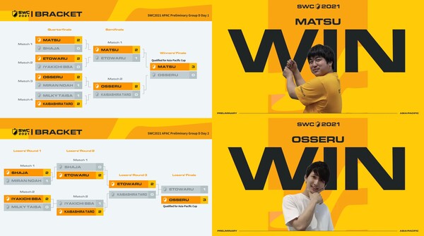 마지막 지역 예선 경기로 펼쳐진 아시아퍼시픽 D조 일본 예선은 터줏대감인 ‘MATSU’를 상대로 7명의 뉴페이스가 도전하는 신구 대결이 연출됐다. 2018년 월드 파이널리스트 3위이자 이후 매년 SWC에 참가한 베테랑 MATSU를 상대로 신흥강자들의 폭격이 첫 매치부터 이어졌으며, 노련함이 돋보이는 안정된 경기력으로 MATSU가 최종 우승해 첫 번째 진출권을 따냈다.