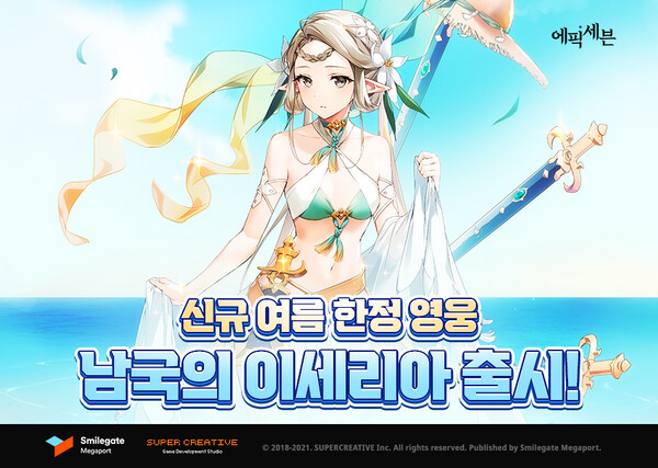 스마일게이트 메가포트(대표 장인아)가 서비스하고 슈퍼크리에이티브(김형석, 강기현 공동대표)가 개발한 글로벌 히트 모바일 RPG ‘에픽세븐’이 신규 영웅 ‘남국의 이세리아’를 업데이트했다고 27일 밝혔다.