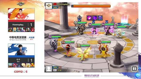 결승전은 3전2선승제의 싱글 토너먼트로 진행됐으며, 첫 라운드인 8강 경기부터 풀 스코어를 기록하는 등 팽팽한 접전이 펼쳐진 결과 중국의 Howtoplay가 연승하며 최종 승리의 영광을 누렸다. 컴투스는 앞으로도 이번 한중 e스포츠 친선대회를 비롯해 게임, e스포츠 등을 통한 양국 간 소통 창구를 지속 확대해 나간다는 방침이다.