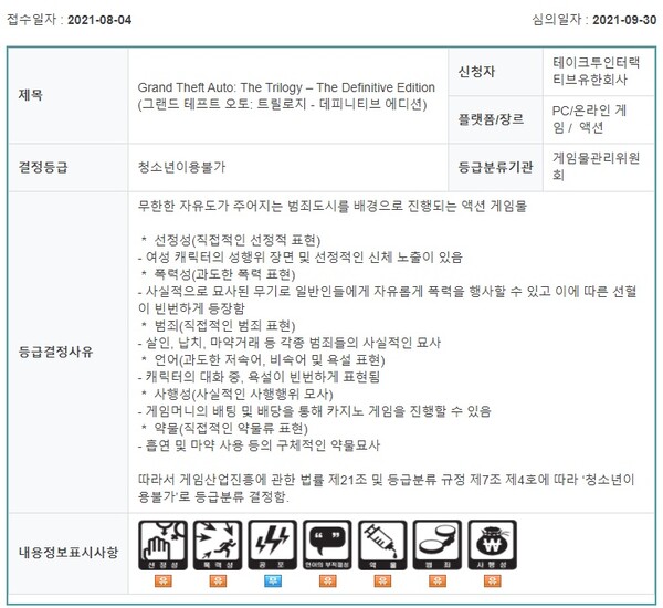락스타 게임즈는 출시일에 대해 ‘올해 하반기’라고만 밝혔으나, 빠르면 10월 안에 출시될 가능성도 점쳐지고 있다. 10월 22일이 ‘GTA3’ 출시 20주년이기 때문이다. 락스타 게임즈의 모회사 테이크투 인터랙티브는 지난 9월 말 한국 게임물관리위원회를 통해 이 게임의 등급분류를 마친 바 있다. 또한 락스타 게임즈는 출시를 준비하기 위해 10월 11일부터 기존 클래식 버전의 디지털 판매를 중단한다고 밝혔다. 판매가 중단되더라도 기존에 게임을 구매했다면 다시 게임을 다운로드하거나 플레이할 수 있다.