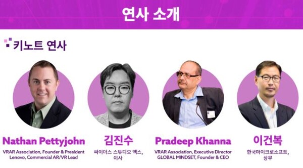특히, 세번째 키노트 연사로 나서는 세계VRAR협회의 프라디프 칸나(Pradeep Khanna) 이사는 ‘글로벌 메타버스 시장의 트렌드’를 주제로 다양한 글로벌 사례를 통한 트렌드를 제시하며, 마이크로소프트 코리아의 이건복 상무는 ‘메타버스와 디지털 트윈을 이용한 융합현실 구축’을 주제로 연사로 참여해 컨퍼런스에 대한 기대감을 높이고 있다.