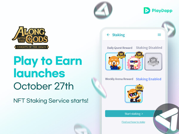 ‘플레이댑’은 ‘신과함께’의 P2E 서버 오픈일을 오는 27일로 확정하고, NFT(대체 불가능 토큰) 스테이킹 서비스(한국, 중국 제외)를 시작한다고 20일 밝혔다. NFT 스테이킹이란, 일정 기간 동안 NFT를 예치 해두고 이자, 보상 등을 리워드로 받는 형태의 서비스를 의미한다.