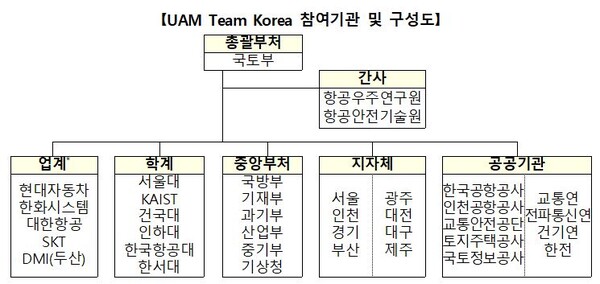 UAM Team Korea는 2020년 6월 정부합동 ‘한국형 도심항공교통(K-UAM) 로드맵’ 발표를 계기로 발족한 도심항공교통 분야 민관협력체이자 정책공동체이다.