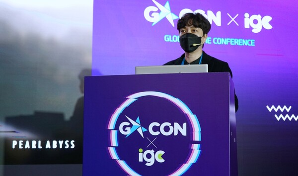 고광현 펄어비스 리드 엔진 프로그래머가 19일 부산 벡스코에서 열린 ‘지스타 2021’ 컨퍼런스에서 ‘차세대 엔진 개발 포스트모템’이라는 주제로 강연을 펼쳤다.