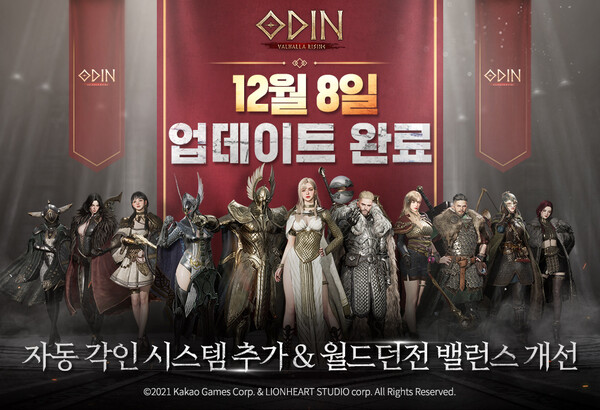 카카오게임즈(각자 대표 남궁훈, 조계현)가 8일, 개발 명가 라이온하트 스튜디오(대표 김재영)의 대작 MMORPG ‘오딘: 발할라 라이징(이하 ‘오딘’)’에 자동 각인 시스템 추가를 비롯해 다양한 시스템 편의성 개선을 진행했다.