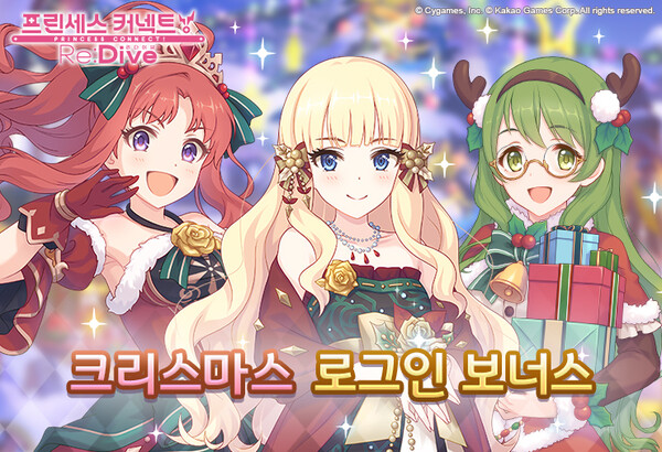모바일 애니메이션 RPG ‘프린세스 커넥트! Re:Dive(리:다이브)’에서는 24일부터 이틀간 ‘크리스마스 로그인 보너스’ 이벤트를 진행해 이벤트 기간 로그인을 하는 모든 이용자에게 ‘쥬얼 1,000개(재화)’를 지급한다. 여기에, 28일까지 ‘크리스마스 기념 출석 선물’ 이벤트로 총 ‘성도석 2,500개(재화)’를 선물한다.