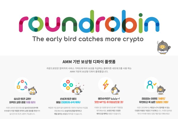 라운드로빈에는 참여자의 서비스 기여도에 따라 보상이 자동 지급되는 AMM(Automated Market Maker) 기반 시스템이 적용됐다.