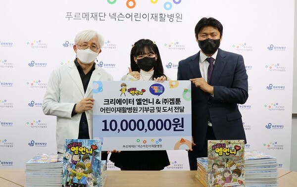 겜툰(대표 송경민)과 크리에이터 옐언니는 12월 23일 ‘사라진 옐언니’ 10권 완간을 기념해 수익금 일부인 1천만 원을 ‘푸르메재단 넥슨어린이재활병원’에 기부했다고 밝혔다.