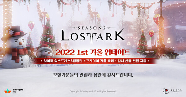 스마일게이트 RPG(대표 지원길)의 PC MMORPG ‘로스트아크’가 ‘로아온 윈터’ 페스티벌과 대규모 겨울 이벤트 시작 이후 대부분의 지표가 폭발적인 상승세를 보이며 흥행 질주를 이어 나가고 있다.