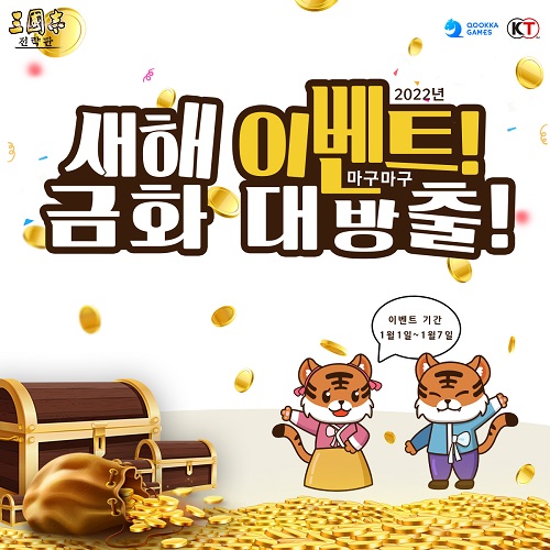 먼저, 2022년 1월 1일부터 7일까지는 ‘근하신년 대축제’가 진행된다. 이용자는 게임 접속만 해도 금화 및 이벤트 교환 아이템을 받아볼 수 있으며, 매일 0시부터 20시 사이에 인게임 ‘행운 도래 이벤트 페이지’에서 18888금화 뽑기에 참가할 수 있다. 금화 뽑기는 매일 5명을 추첨하여 행운 최고 보상 18888금화를 제공하는 형태이다. 이벤트 종료까지 행운 최고 보상을 획득하지 못해도 이벤트 종료 후에는 행운 대박 보상 388금화를 획득할 수 있다.
