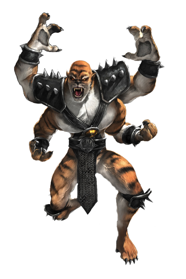 미드웨이의 대전격투게임 ‘모탈컴뱃’에도 호랑이 콘셉트의 캐릭터 킨타로가 있다. 네 팔을 가진 쇼칸족의 전사로, 전신에 호랑이 털이 덮이고 호랑이 발톱을 무기로 사용한다. ‘모탈컴뱃2’에서 중간 보스로 등장한 후 시리즈에 종종 출연했다. 대체 시간대를 그린 코믹스에서는 소냐와 싸우다 사망했다. ‘베이발리티’로 승리했을 때는 고양이처럼 접시에 담긴 우유를 핥아먹는다.