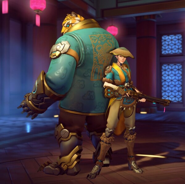 블리자드의 팀 기반 슈팅게임 ‘오버워치’에도 두 명의 호랑이와 관련된 캐릭터가 있다. 첫번째는 ‘백호’ 스킨을 갖고 있는 겐지다. ‘백호’ 겐지는 2018년 ‘황금 개의 해’ 이벤트에 추가된 전설 스킨으로, 사신(청룡, 백호, 주작, 현무) 중 백호를 콘셉트로 삼았다. 궁극기인 용검을 사용하면 용 대신 백호가 등장한다.