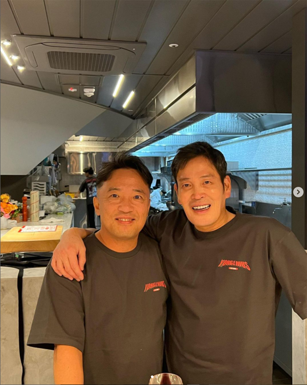 사진 속 두 사람은 정 부회장의 쿠킹스튜디오 ‘용지니어스’ 기념 티셔츠를 입고 다정하게 어깨동무를 하고 있다. 또 다른 사진에는 김 대표가 정 부회장의 반려견을 쓰다듬는 장면이 담겼다.