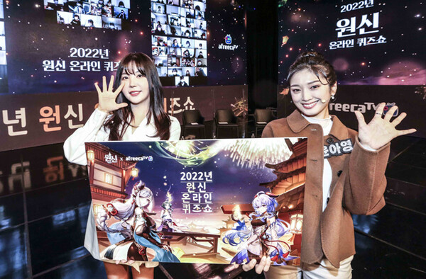 미호요(miHoYo)가 지난 22일 서울 강남구 테헤란로 아프리카TV 스튜디오에서 자사가 개발한 오픈월드 액션 RPG ‘원신’의 ‘2022년 원신 온라인 퀴즈쇼’를 개최했다.