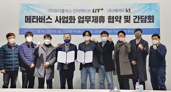 유티플러스 인터랙티브(대표 유태연)은 KT(대표 구현모)와 25일 ‘메타버스 사업 활성화’를 위한 업무 협약(MOU)을 체결했다.