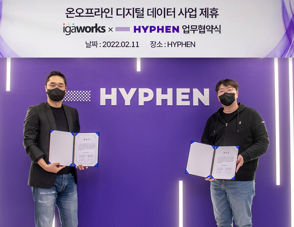계약식은 아이지에이웍스 마국성 대표, 손광래 최고전략책임자, 하이픈코퍼레이션 정순권 대표, 박용현 리더 등 각 사 주요 관계자들이 참석한 가운데, 서울 강남구에 위치한 하이픈코퍼레이션 본사에서 진행됐다.