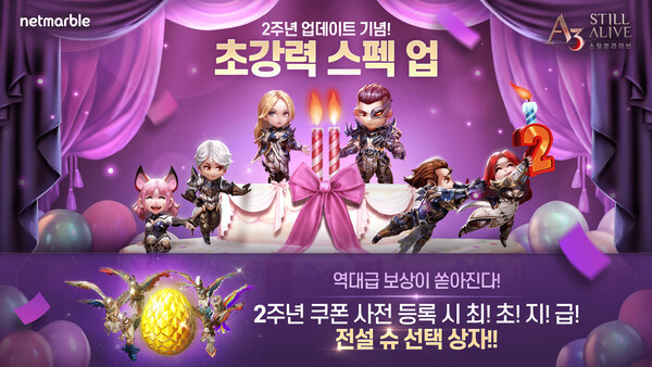 넷마블(대표 권영식, 도기욱)은 모바일 최초 배틀로얄 MMORPG ‘A3: 스틸얼라이브’의 2주년 업데이트 사전등록 페이지를 열고 사전등록을 실시한다고 18일 밝혔다.