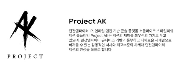 네오플은 2022년 대규모 공개채용 홈페이지를 통해 ‘프로젝트 AK’를 발표했다. 게임톡의 확인 결과 이 게임은 네오플이 이전에 발표했던 ‘프로젝트 BBQ’와 동일한 게임이다. 2017년부터 개발해온 ‘프로젝트 BBQ’는 ‘던전앤파이터’ IP와 언리얼엔진을 기반으로 한 PC 플랫폼 게임으로, 3인칭 백뷰 시점의 3D 액션 RPG다.