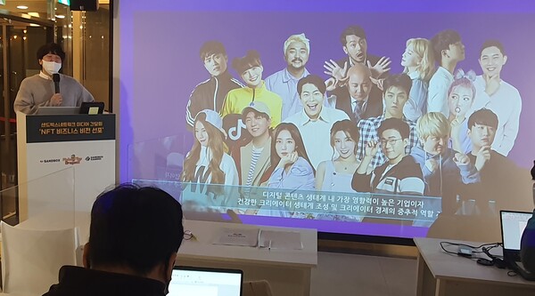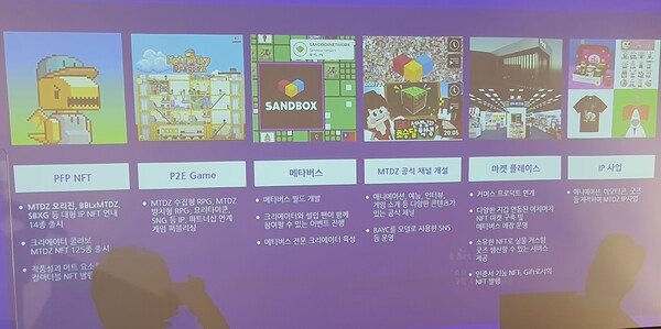 간담회서는 제너레이티브 픽셀아트 기반의 PFP NFT(Profile Picture NFT, 프로필 사진형 NFT) '메타 토이 드래곤즈'(Meta Toy DragonZ, MTDZ) 등 NFT 비즈니스 청사진을 제시했다.