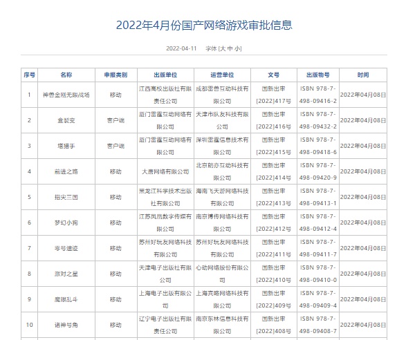 중국에서 개발한 게임에만 발급하는 내자판호이기 때문에 한국 및 해외 게임은 포함되지 않는다.
