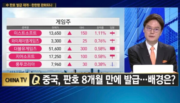 박승찬 용인대 중국학과 교수는 한 경제 케이블 방송에서 “사드 사태 이후 ‘한한령’으로 한국게임에 대한 판호는 거의 나오지 않았다. 그럼에도 ‘한한령’이 이유가 아니라고 대답한다. 그렇다면 진짜 이유를 물어야 한다”고 강조했다.