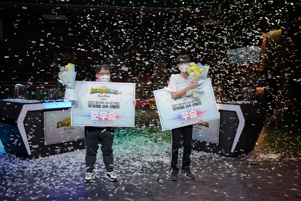 2022 항저우 아시안게임 ‘하스스톤’ 종목 국가대표 선수 선발전(이하 하스스톤 국가대표 선발전)이 금요일과 일요일 양일간 진행된 결과, 치열한 경쟁을 거쳐 결승에 진출한 azuuu 권혁주 및 Helve187 박준수 등 두 명의 선수가 ‘하스스톤’ 종목 국가대표 후보 자격을 최종 획득했다.