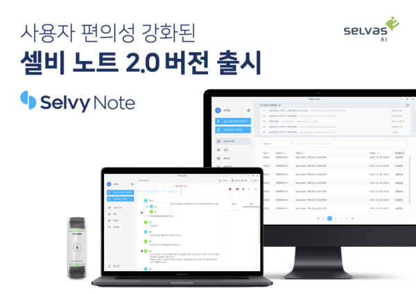인공지능, 음성기술 대표기업 셀바스AI(KOSDAQ 108860)가 음성기록 솔루션 ‘셀비 노트(Selvy Note) 2.0’을 새롭게 출시했다고 3일 밝혔다.