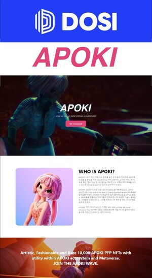 에이펀 인터랙티브는 라인 넥스트가 구축하는 글로벌 NFT 플랫폼 ‘도시(DOSI)’에서 NFT 컬렉션을 기획하며, 글로벌 NFT 밸류체인 형성에 기여할 예정이다.