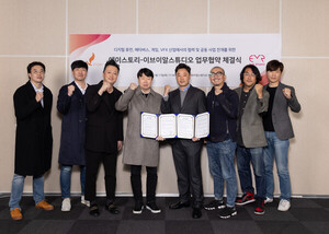 이브이알 본사에서 진행된 이번 협약식에는 이성호 디스트릭트 대표, 최은석 부사장, 윤용기 -김재환 이브이알 대표 등 양사 주요 임원들이 참석했다. 두 회사는 이번 업무 협약을 통해 디지털 미디어아트를 활용한 콘텐츠 개발을 시작으로 다양한 협업을 진행한다.